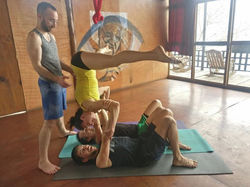 L'AcroYoga permet de tonifier le corps entier tout en augmentant la souplesse. Les cours se donnent dans une ambiance chaleureuse et personnalisée. La classe invite les étudiants à surmonter de nouveaux défis, leur donne les moyens d'assumer de nouvelles initiatives et augmente leurs capacités physiques. Nul besoin d’arriver avec un partenaire! Vous attendent: une approche authentique, beaucoup d'humour, support et encouragement. Plaisir assuré!